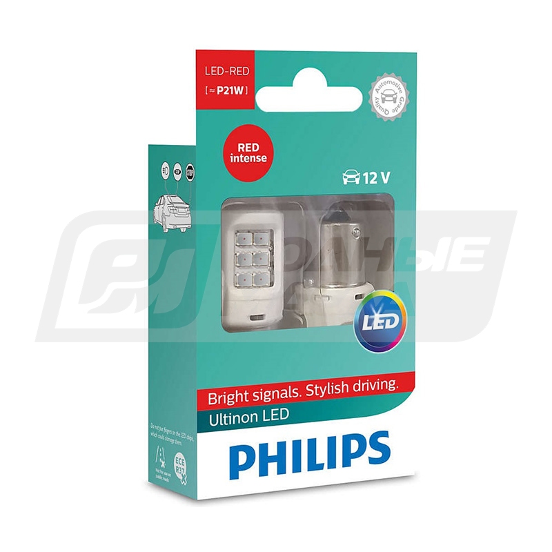 Лампы для стоп-сигналов LED Philips Ultinon [˜P21W] обеспечивают высокую яркость и насыщенный красный свет для безопасности и создания стильного внешнего вида.